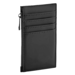 Matte-look PU coating on fabric, PVC free, Water repellent fabric, Minimalist styling, Holds four credit cards, Rubberised zips, Can be decorated front and rear, Tearaway label for ease of rebranding, Dimensions: 13x7cm, Maximum print area: 6x12cm