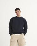 Oversized fit, Heavyweight, Crew neckline, Ribbed collar, cuffs and hems, Set in sleeves, Brushed inner fleece, 100% cotton faced fabric, Tearaway label, *Heather Grey: 60% ringspun cotton/30% polyester/10% recycled polyester