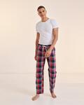 Woven tartan lounge pants with plain hem, Full elasticated waist with contrast mock drawcord, Back patch pocket, Tear-out label